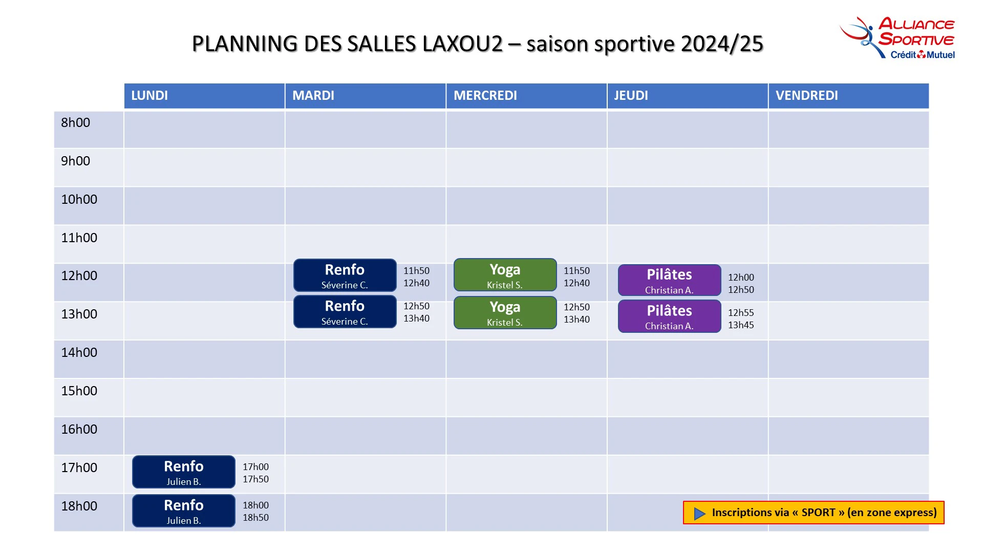 Les salles de sports sont uniquement accessibles pendant les activités organisées : inscription via le mnémonique SPORT.